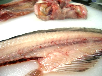 高品質なほっけはおろした後このように油が、骨からもにじみ出てきます。