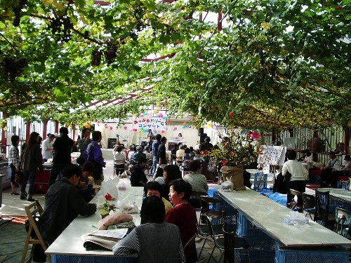 葡萄栽培の巨大ビニールハウスが会場です