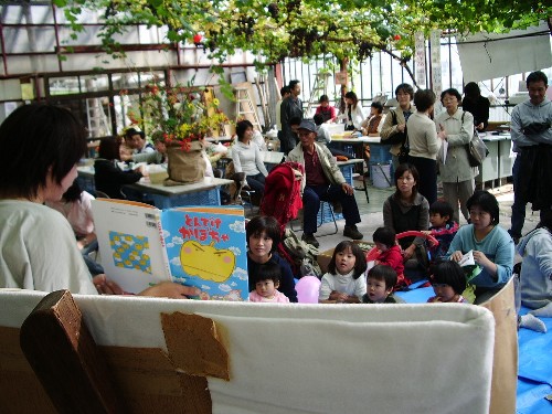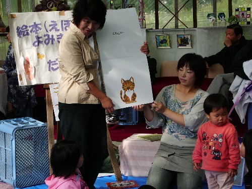 絵本の読み聞かせ。食いいるように見ています