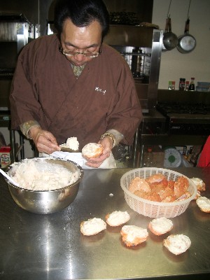 手作業で蟹の殻に詰めていきます。